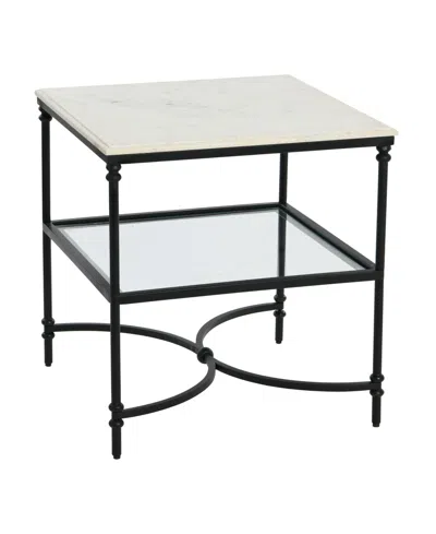 24" Libertine Genuine Marble And Metal Ogee Edge Square End Table In Black