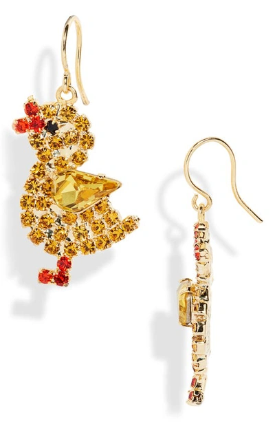 Easter Chick Drop Earrings In Gold With Multi Colored Stones