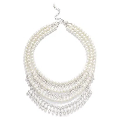 Crystal & Imitation Pearl Layered Necklace In Sil/white