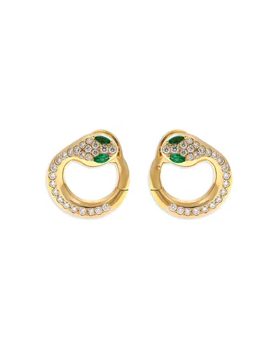 18k Yellow Gold Diamond & Emerald Serpent Hoop Earrings - Exclusive, Italy Campaign In Green/gold