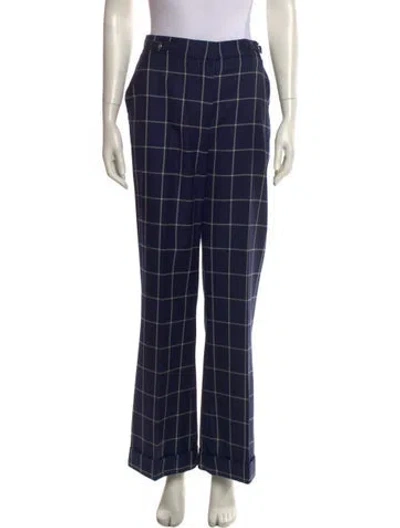 Pre-owned Plaid Print Wide Leg Pants In White