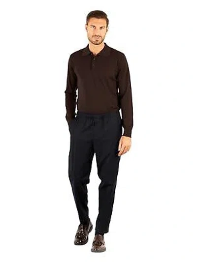 Pre-owned Man Straight Leg Trousers Navy Blue 18375