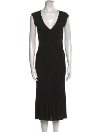 Pre-owned V-neck Knee-length Dress W/ Tags In Black