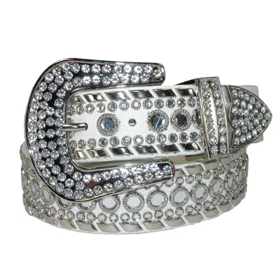 Women's 1 1/2 Inch Western Rhinestone Belt (plus Size Available) In White