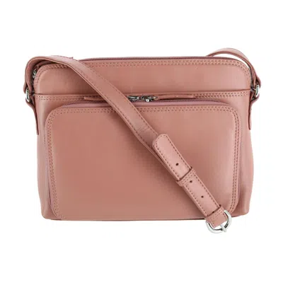 Women's Leather Shoulder Bag Purse With Side Organizer In Pink