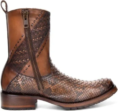 Pre-owned Men's Boot In Genuine Python Leather And Bovine With Zipper In Brown