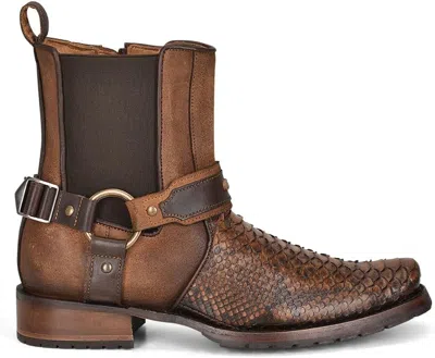 Pre-owned 1j2lph - Brown Casual Cowboy Python Skin Zip Ankle Boots For Men In Chesnut Brown