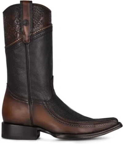 Pre-owned 1b1dma - Black And Brown Casual Cowboy Stingray Boots For Men