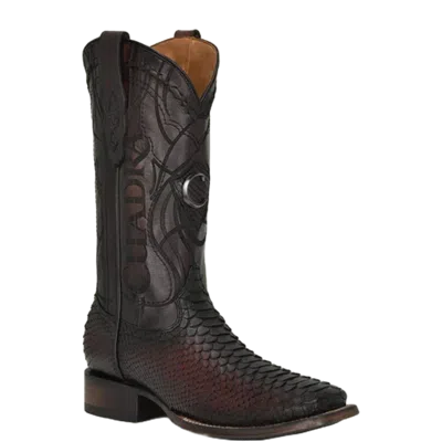 Pre-owned Men's Lisboa Cherry Python & Laser Square Toe Exotic Boots Cu746