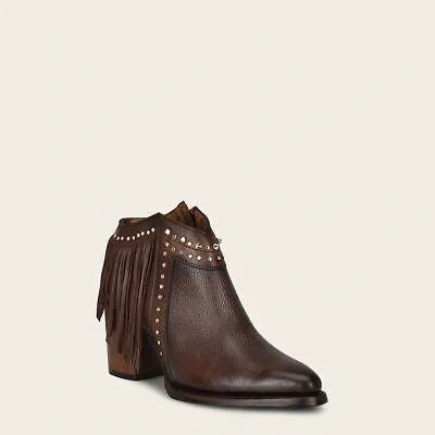 Pre-owned Ladies Fringe & Studs Chocolate Pointed Toe Booties Cu813 In Brown