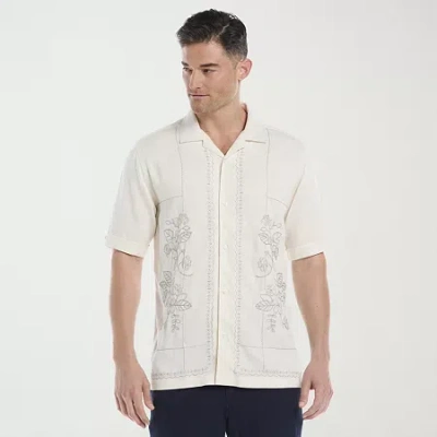 Embroidered Button-down Mens Short Sleeve Camp Shirt In Neutral