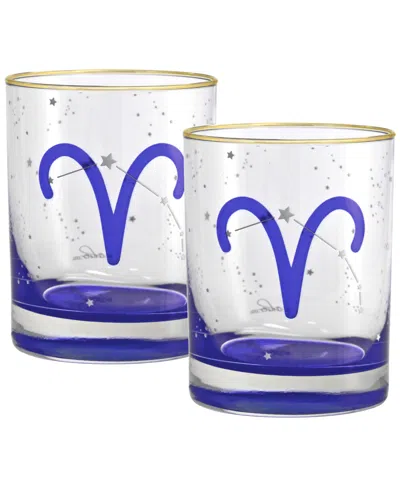 Aries Zodiac Double Old-fashioned Glass, Set Of 2 In Blue