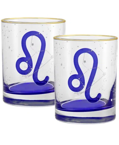 Leo Zodiac Double Old-fashioned Glass, Set Of 2 In Blue