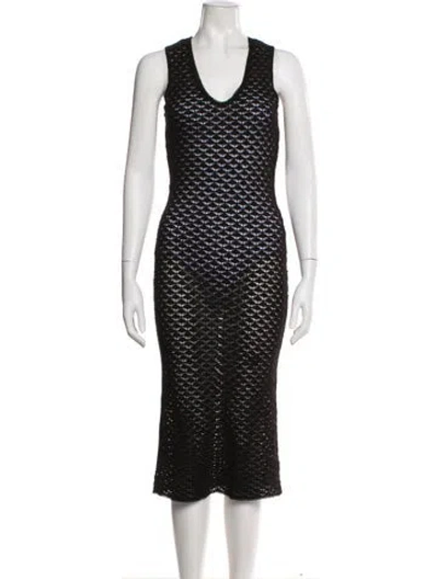 Pre-owned Lace Pattern Midi Length Dress In Black