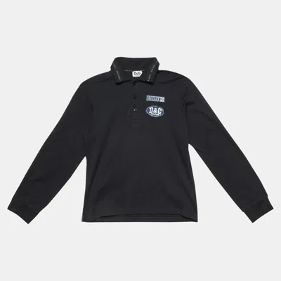 Pre-owned Junior Black Cotton Applique Detail Polo T-shirt 12 Yrs