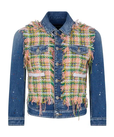 Striped Tube Top Sweater With Metallic Detail In Blue