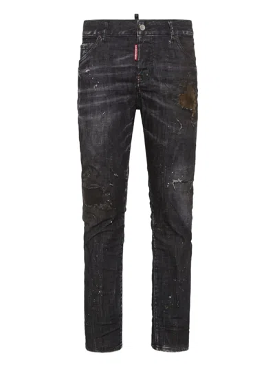 Paint-splatter Distressed Jeans In Black