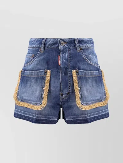 Summer Lovers Denim Shorts With Fringe Detailing In Blue
