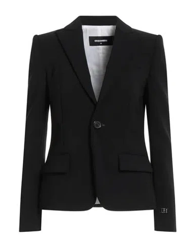 Woman Blazer Black Size 8 Polyester, Elastane, Glass, Plastic