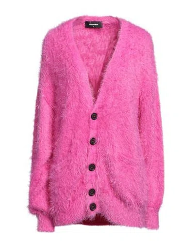 Woman Cardigan Magenta Size L Polyamide In Pink