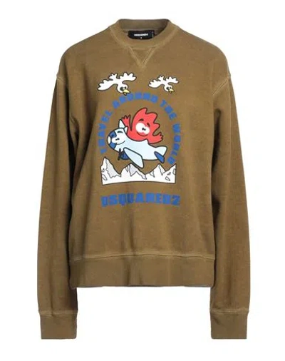 Woman Sweatshirt Lime Green Size M Cotton, Elastane