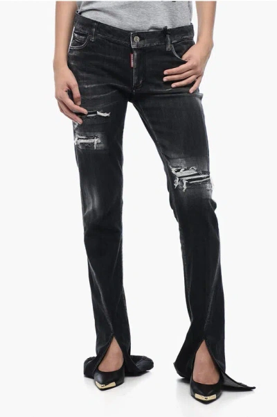 Distressed Effect Trumpet Fit Denims With Bottom Slits 22 Cm In Black