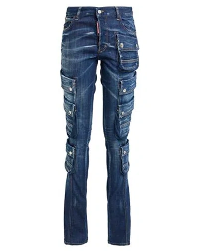 Woman Jeans Blue Size 38 Cotton, Elastane