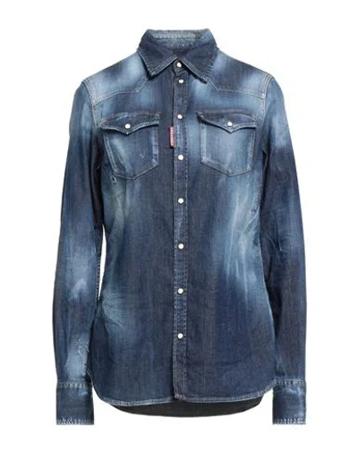 Woman Denim Shirt Blue Size 8 Cotton, Elastane