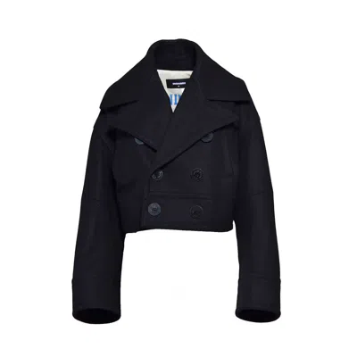 Double-breasted Cropped Coat In Black