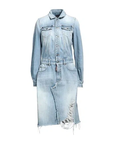 Long Sleeve Denim Midi Dress In Light Blue
