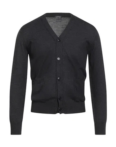 Man Cardigan Charcoal Size 38 Merino Wool In Black