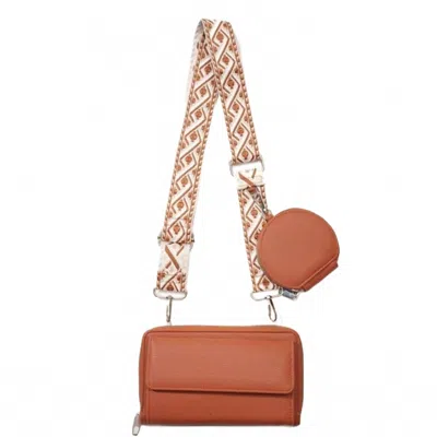 Lucy Patterned Strap Crossbody Bag In Cognac In Brown