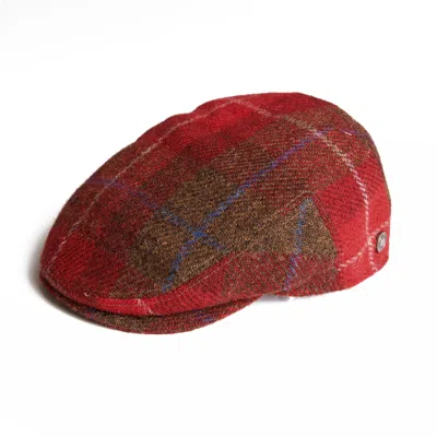 Men's Justin Lava Red Harris Tweed Flat Cap Made In Italy