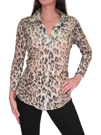 Crushed Long Sleeve Cat Shirt In Brown Multi