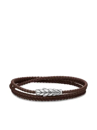 Chevron Braided Leather And Sterling Silver Wrap Bracelet In Brown