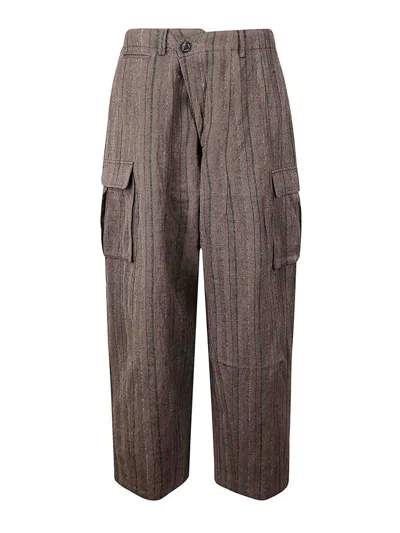 Pinstripe Cotton Blend Trousers In Brown