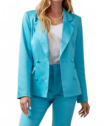 Double Breasted Satin Blazer In Sky Blue