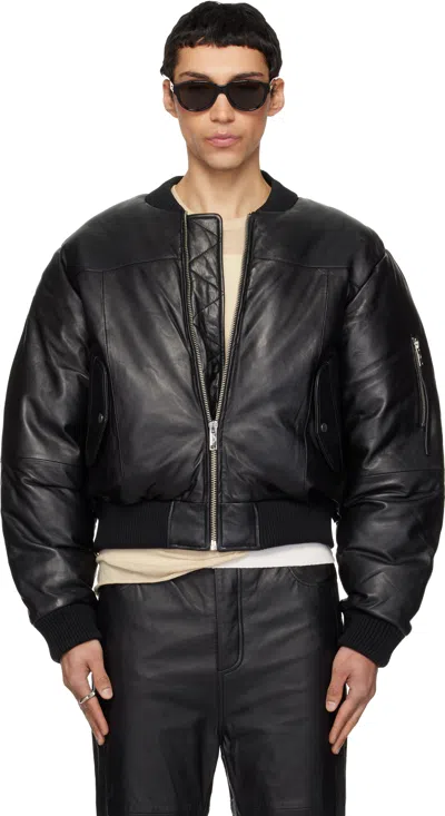 Black Bofinger Padded Leather Bomber Jacket