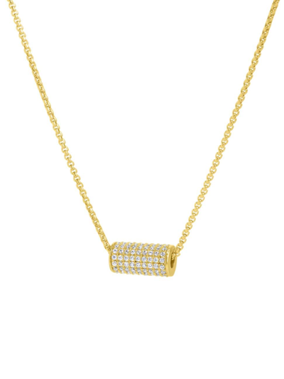 Women's Petit Pavé 22k-gold-plated & Cubic Zirconia Tube Pendant Necklace In Yellow Gold/topaz