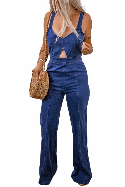Cut Out Zipped Sleeveless Denim Jumpsuit In Blue