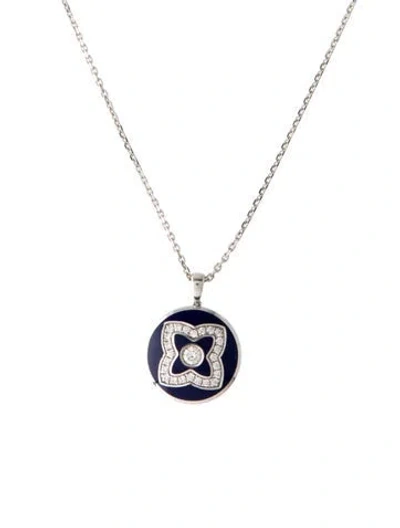 Pre-owned 18k Diamond & Enamel Enchanted Lotus Pendant Necklace, 17.75" In Blue