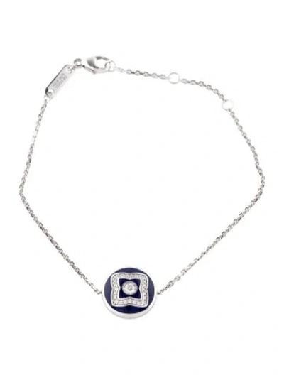 Pre-owned 18k Diamond & Enamel Enchated Lotus Station Bracelet, 7" In Blue