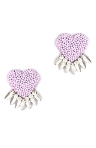 Danika Beaded Fringe Heart Stud Earrings In Pink
