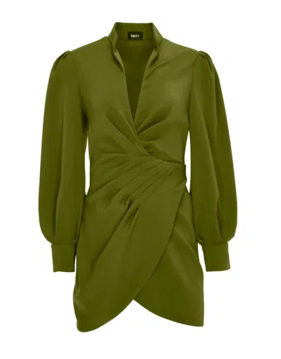 Deep V Draped Mini Dress In Olive In Green