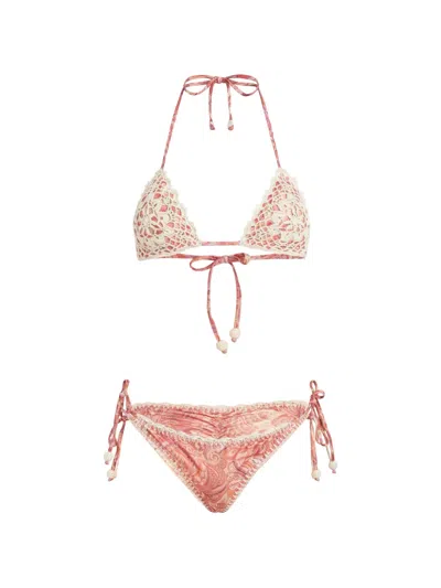 Crochet Appliqued Bikini In Pink