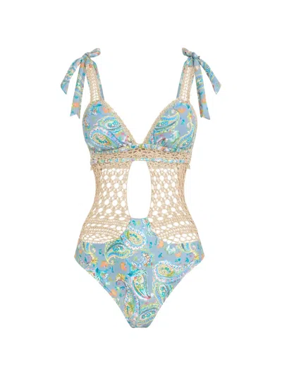 Paisley Crochet Swimsuit In Blue