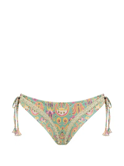 Paisley-print Bikini Bottom In Green