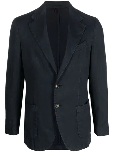 Notched-collar Single-breasted Blazer In Blau
