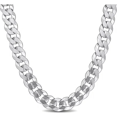 Sterling Silver Bevel Curb Chain Necklace In Metallic