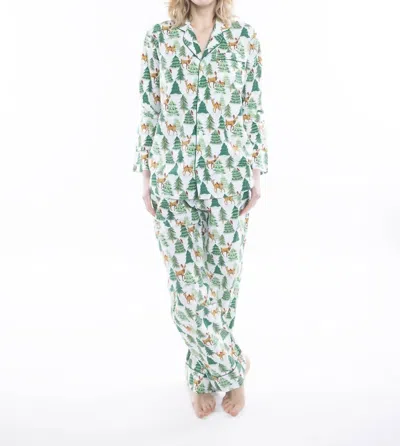 Deer Jamas Long Sleeve Pajama Set In White In Green